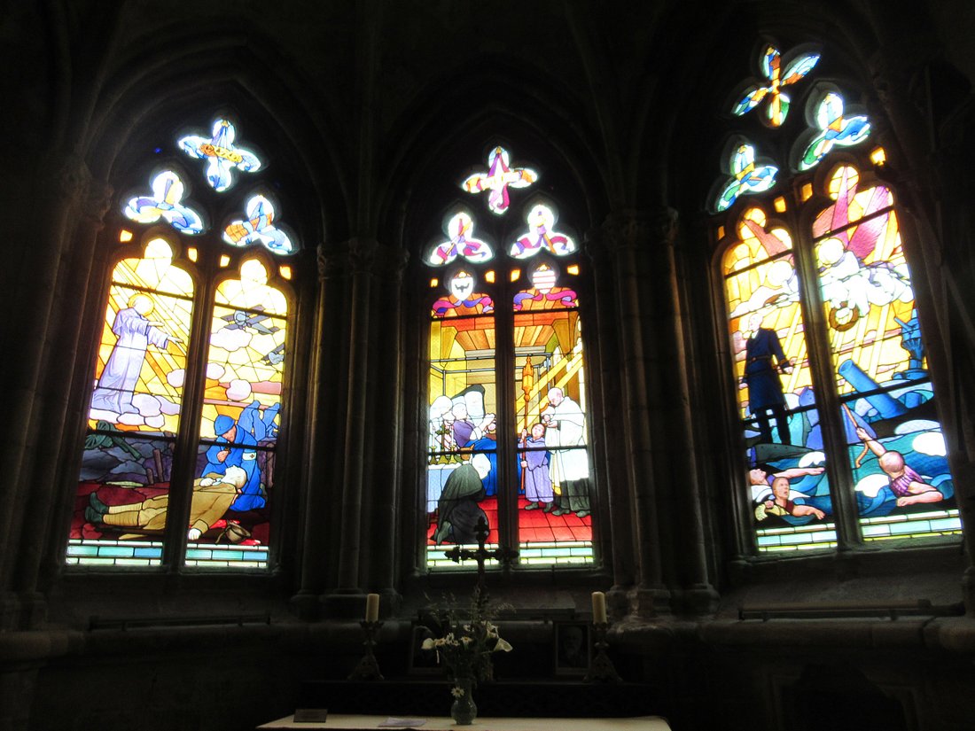 Die übrigen Fenster in dieser Kirche sind zwar auch überaus prächtig und sehr sehenswert. Aber inhaltlich überschreiten sie nicht den Themenkreis, den man auch sonst in Kirchenfenstern zu sehen bekommt.