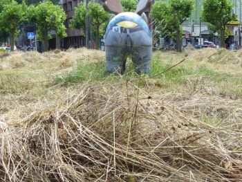 war jetzt in der tat zugewachsen, aber das zuständige amt hat daraus heu machen lassen:Ein Kunstwerk, das bald zugewachsen sein wird?