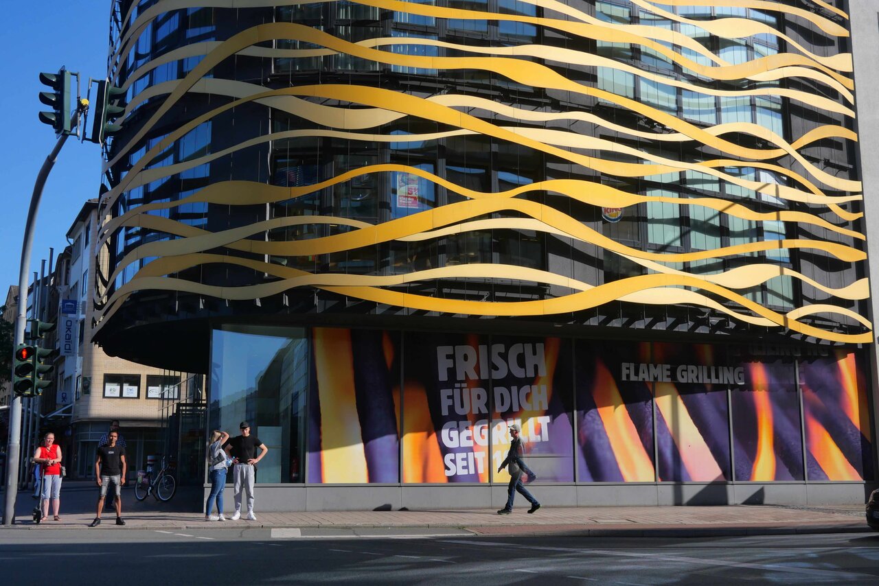 Richtig, die "Duisburg". Wir waren im Hellas. Zum gefühlt fünften Mal in einem Jahr.Und du bist an der Bushaltestelle gestanden an der Ecke Steinsche Gasse / Poststraße / Schwanenstraße vor diesem merkwürdigen Glas-/Stahlbauwerk (Kuhtor?), wo auf dem Gogel-Streetview-Bild von November 2022 das Riesenrad dahinter steht.