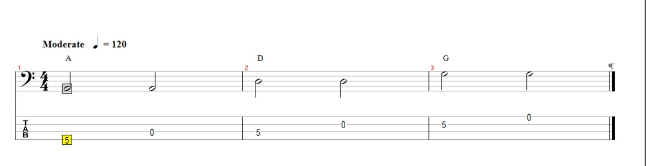 Wobei "Saite nach unten" hier meint, von der obersten zur untersten Saite wenn man den Bass in der Hand hält (E zu A, A zu D usw.). Vom Ton her betrachtet müsste es natürlich "Saite nach oben" heißen. Verwirrend, ich weiß. Bei "Bund hoch/Bund runter" passt es wieder, sprich höherer (Richtung Bridge) und tieferer Ton (Richtung Kopf).