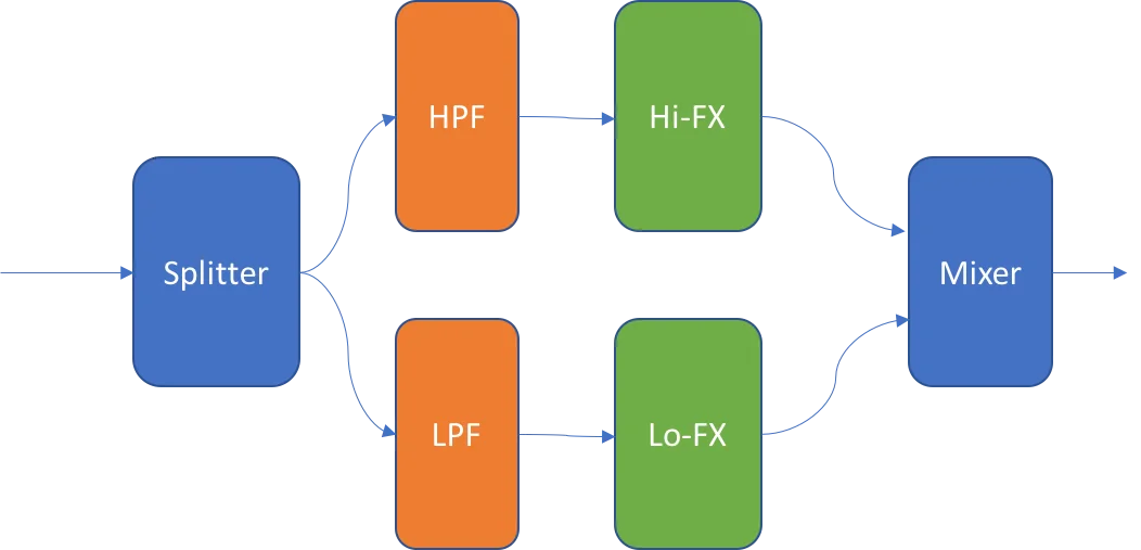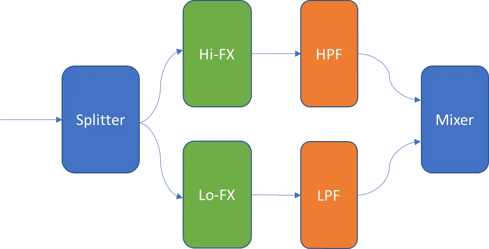 Dat is was Anderes...dein komplettes Bass-Signal läuft fullrange sauber durch (nicht nur der Bassanteil im Frequenzspectrum).das Bassignal läuft sauber durch, auf dem 2. Ausgang liegt ein Effektsignal oktaviert und bei Bedarf verzerrt und nochmal oktaviert und Quinte drüber und Quarte drunter oder Kombinationen daraus