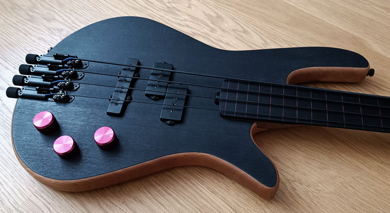 Alles Schablonen, die sich über die Jahre angesammelt haben. Halsfuß und -tasche sind mit einer Jazz Bass Schablone gefräst. Das E-Fach war eine PRS Custom Schablone.