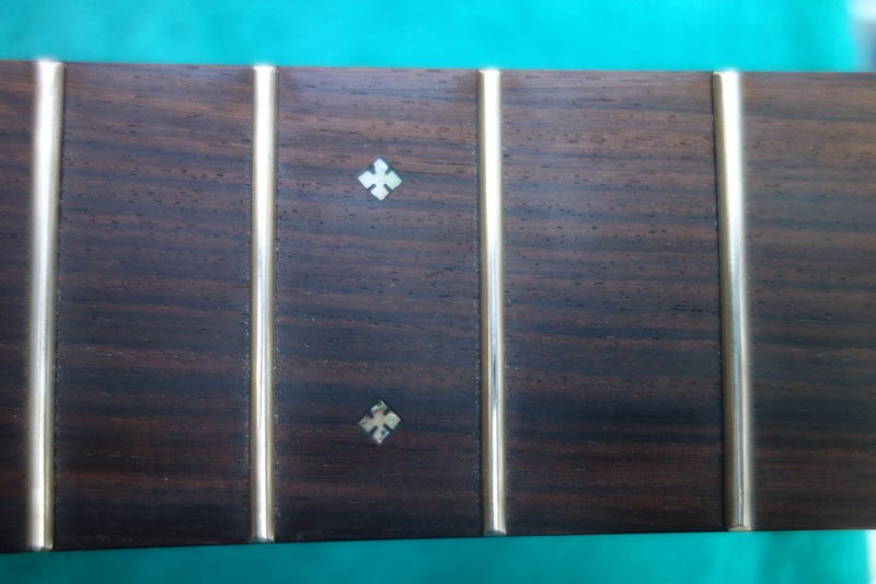 Die Bundstäbchen sind sauber eingesetzt, keine störenden Kanten oder Ecken. Der Bass ist rel. oktavrein, ein klein wenig Probleme hat da jeder Aku dieser Bauweise. Die Einlegearbeiten im Griffbrett sehen nur auf den ersten Blick aus wie ein Hakenkreuz, ich finde sie eigentlich ganz schön. Nicht so protzig, eher zurückhaltend.