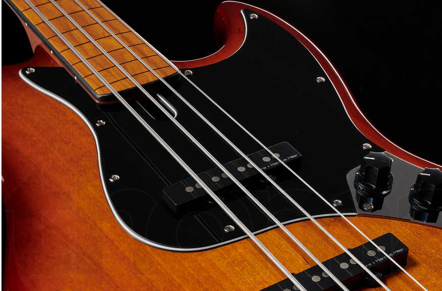 Marcus Miller V5 Alder-4 TS FL, 4-Saiter Fretless E-Bass made by Sire, Erle Korpus, einteiliger Ahorn Hals, C Halsprofil, gerösteter Ahorn Griffbrett, 34" Longscale, 20 Lagen, 38mm Sattelbreite, Knochensattel, Saitenabstand 20 mm, 241mm Griffbrett...