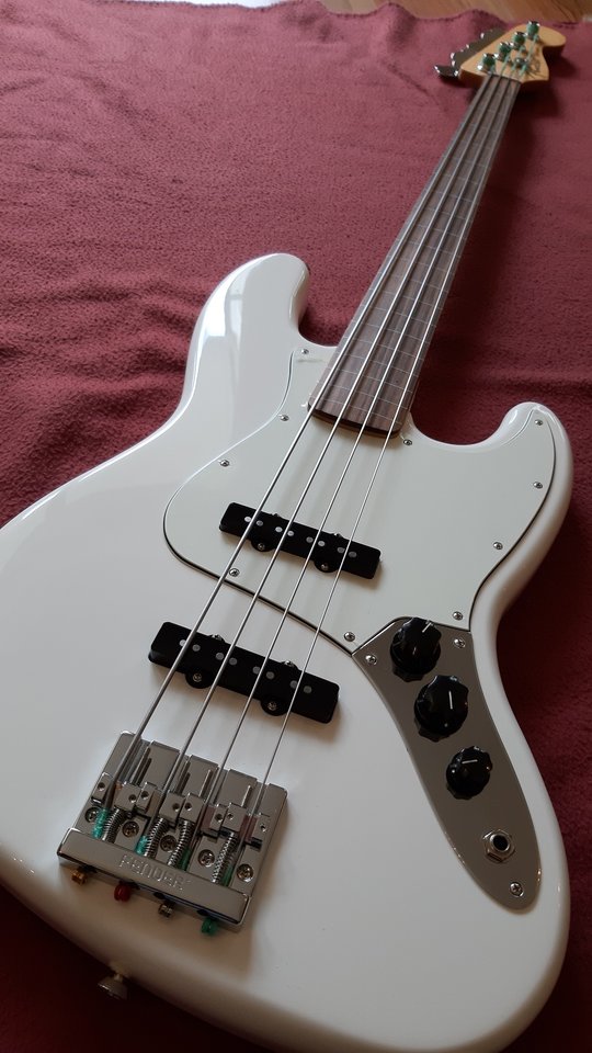 Fündig geworden bin ich bei meinem Lieblingsladen in Nürnberg, BTM-Guitars -> ein gebrauchter Fender Jazzbass aus der Player-Serie, Baujahr 2018, in Polar-White, momentan mit Fender-Flats bestückt....