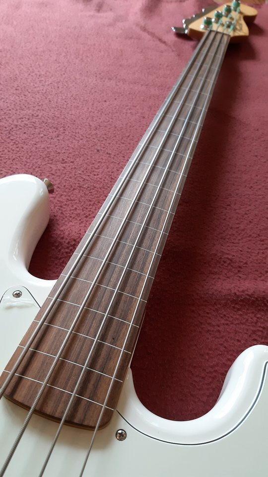 Viel Spaß damit.Weil die Bastelei mit dem No-Name-Fretless-Neck an diversen Bodys nicht so richtig funktionieren wollte, hatte ich die Faxen dicke...