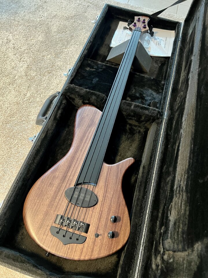 Rosewood würde ich auch nicht unbedingt als Griffbrett für einen Fretless wählen. Da sind härtere Hölzer nicht nur widerstandsfähiger sondern sorgen für meinen Geschmack auch für den geeigneteren Fretlesston. Mein Consat mit Ebenholzgriffbrett zeigt nach vleien Jahren intensiven Gebrauchs sehr moderate Spuren hauptsächlich unter der A Saite. Nach Griffbrettreinigung sieht man wenig und die Bespielbarkeit ist völlig unbeeinträchtigt. Aber grundsätzlich ist alles erst mal erlaubt was gefällt und das Instrument samt Besaitung sollte die eigenen Vorstellungen erfüllen.