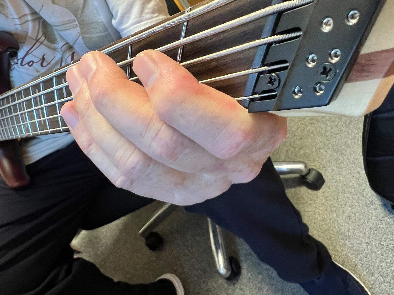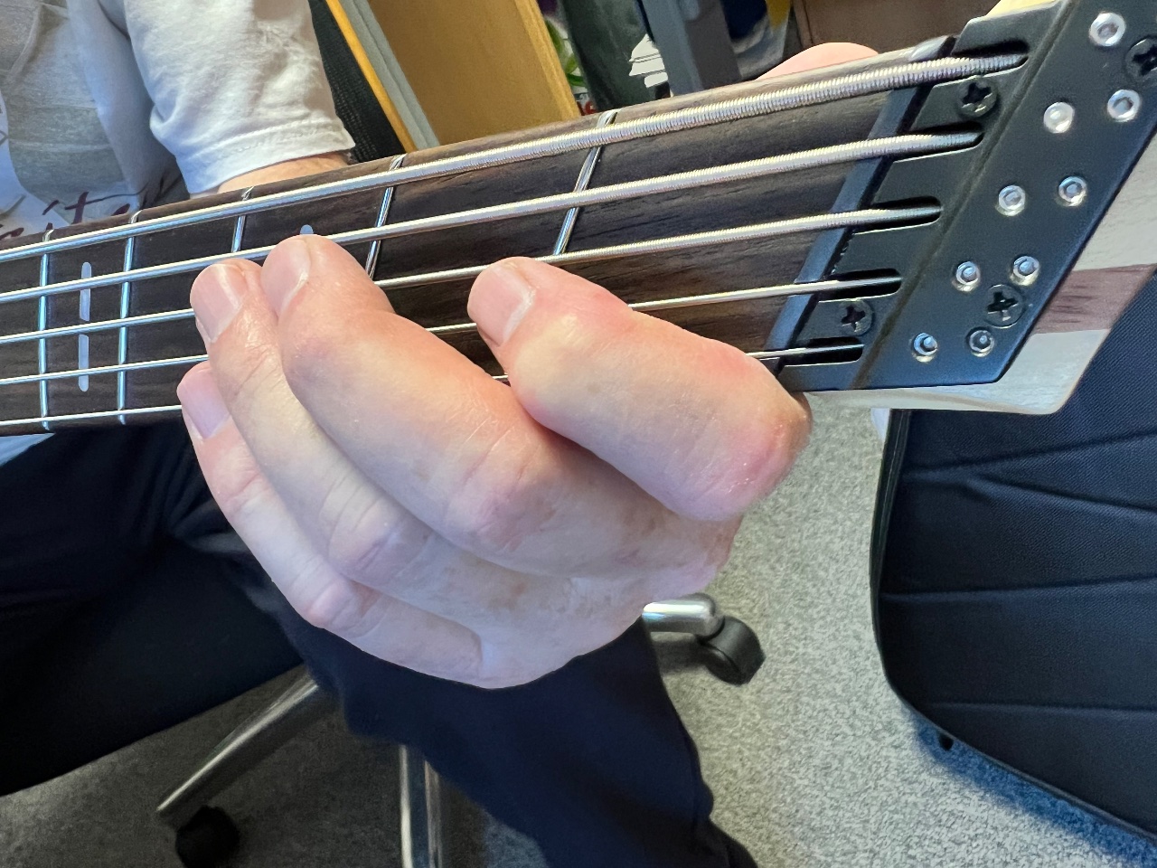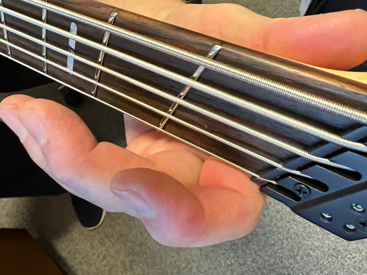 Die Handhaltung erklärt, wieso du bei vielen Fanfret Probleme hast.. Ist natürlich alles persönliche Präferenz, aber der "akademischen" Handhaltung entspricht das ja nun wahrlich nicht. Kommst du so überhaupt an den ersten Bund auf H- und E-Saite ran?Ich hab mir mal von Markus Miller den M7 schicken lassen. Wollte ich einfach mal ausprobieren, da ich ja nur noch Headless Bässe spiele.