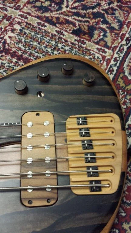 - Fretboard on Makassar Ebony - Kluson mechanics - Bridge by Meridian. Knobs, bridge and pick up covers are handcrafted in wood.