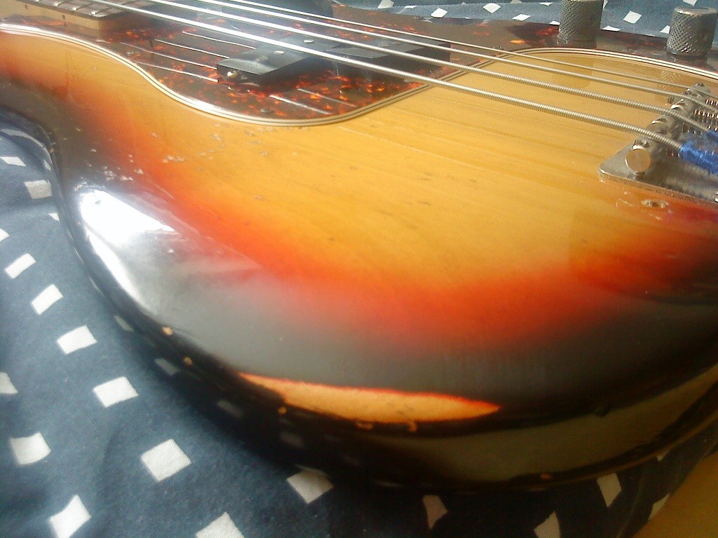 Mein 72er Precision Bass in Sunburst hat auch Risse im Lack und ist an einer Stelle "durchpoliert" bis aufs Holz. Nitro? Poly? Scheißegal, das Teil klingt...