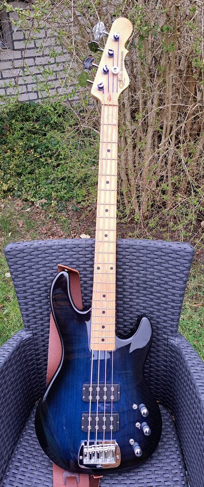 Mal sehen, ob das eine Partnerschaft für länger wird. Im Vergleich zu meinem bisherigen 4-Saiter fühlt er sich erstmal nicht so schön an - schwer zu sagen, warum genau. Der Hals ist anders, die Bespielbarkeit nicht so fluffig...