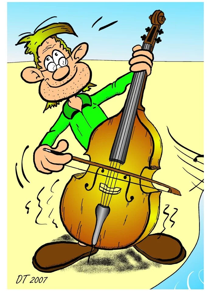 Das ist ein Teil einer Titelzeichnung für ein kleines Video auf YT mit Kontrabassmusik. Die Musik ist nicht von mir, leider - nur die Zeichnung.auch ein sogenannter Bildwitz?