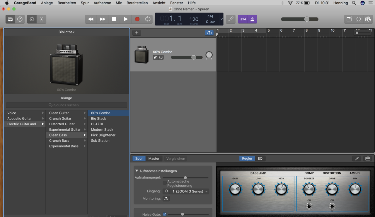 2. Vermeide VSTs und Plugins von Drittanbietern, das ist ein Riesen Zoo der wahrscheinlich mehr Verwirrung stiftet als hilft. Selbst Garageband hat eigentlich schon alles im Bauch was du fürs erste brauchst. Siehe z.B. die Screenshots von Basshenning, ansonsten brauchst du eigentlich nur noch die EQ Funktionen. Kompressor, Reverb & Co. können erst einmal warten bis du den Aufnahmeprozess beherschst.