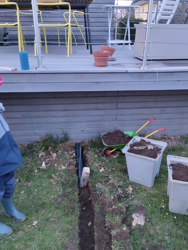 Achja: Ich habe gehofft 2 Bestandsleitungen (Gartenwasserleitung und Stromleitung) die ich selbst vor 8 Jahren eingebuddelt habe, NICHT zu begeben.