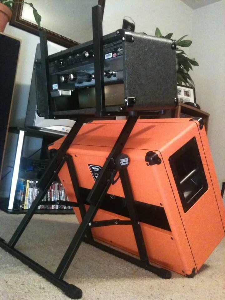 Boxenständer zum Schrägstellen , aber dieser sollte über der Box noch Möglichkeiten zum Abstellen eines Amps und diverser anderer Kleinteile haben.