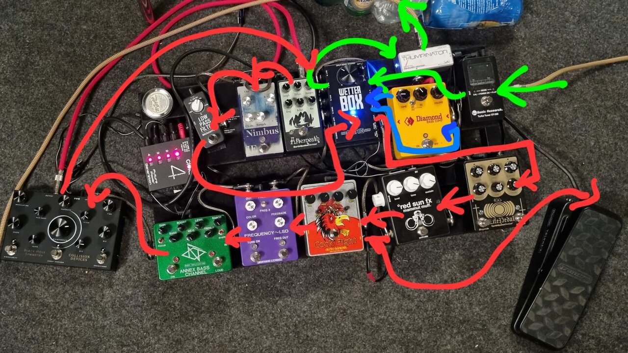 3. Stoner Greg hat schon recht, eine Ratte klaut immer Bass, deshalb habe ich die bei mir in einem parallelen Effektweg eingebaut, damit kann ich die Ratte zu meinem Grundsignal nach Gusto beimischen
