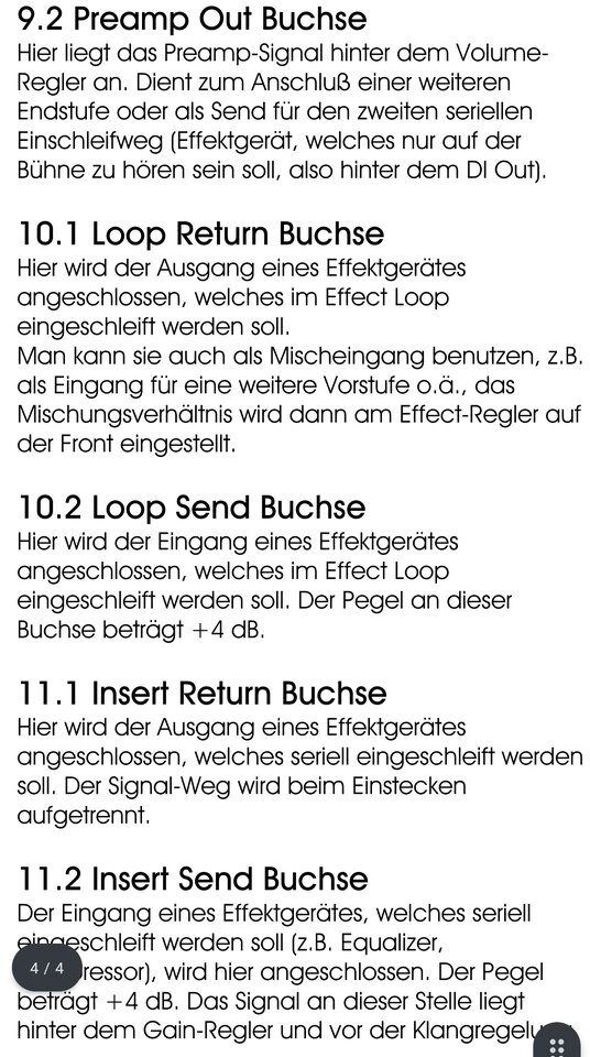 Ungewöhnlich, dass der FX Loop nicht auf den DI OUT geht.Mal etwas allgemeiner: Das Send- / Return-Wege für Line-Level ausgelegt sind, ist nichts Ungewöhnliches und nicht Glockenklang spezifisch. Das machen andere Hersteller auch.