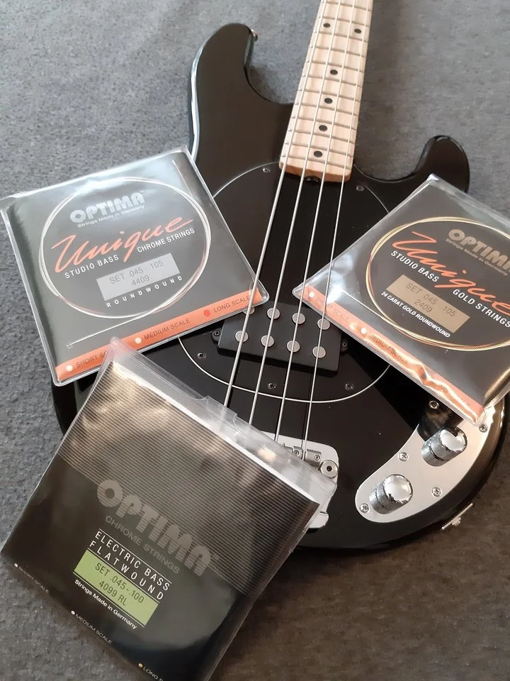 Die Optima Goldsaiten sind echt Klasse, ich habe sie früher auf meinem Custom WAL-Bass mit vergoldeten Mechaniken aufgezogen, der Sound war Spitze und hat geil ausgesehen.