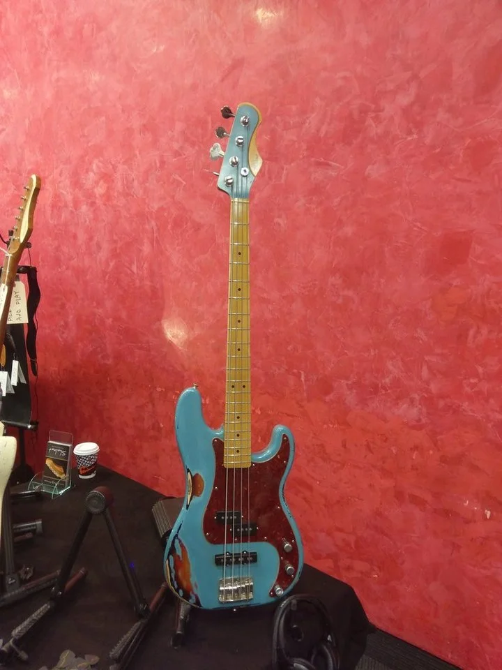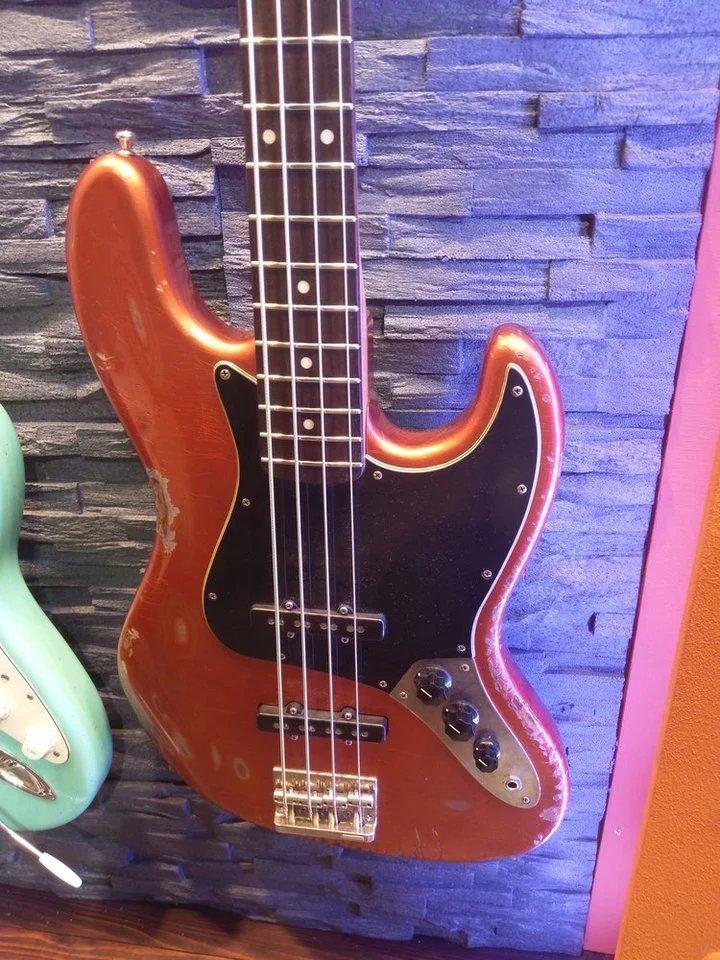Bei Oli fand ich einen Bass mit "Thermoesche" Korpus und Vogelahorn Hals + Delano PU in der MM Position sehr geil. Voll der Joe Dart Sound. Hätte ich keinen Ray, wäre da ein massive Gefährung schwach zu werden am Start gewesen. Oli hatte ein pleasure board zum testen, was ich gut fand, außerdem habe ich mir grade exakt seinen Kopfhörer bestellt, da der mir so gut gefiel.