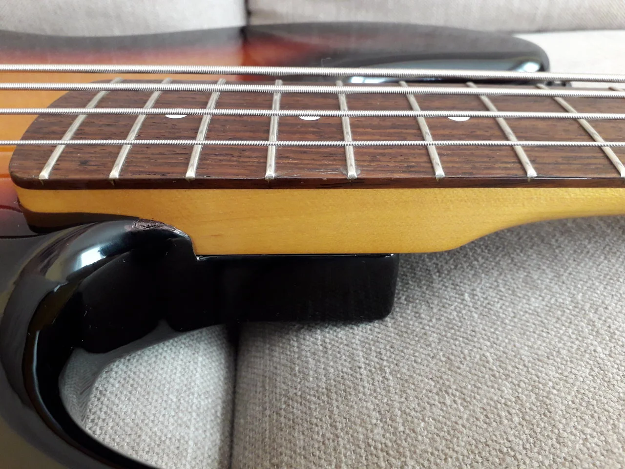 Der Hintergedanke dabei war, den FL-Hals auszubauen und auf meinem weißen Squier Classic Vibe Jazz Bass '60s zu schrauben. Denn dieser hat ja den „besseren“ Linde-Korpus und auch so sind die Teile sehr stimmig.