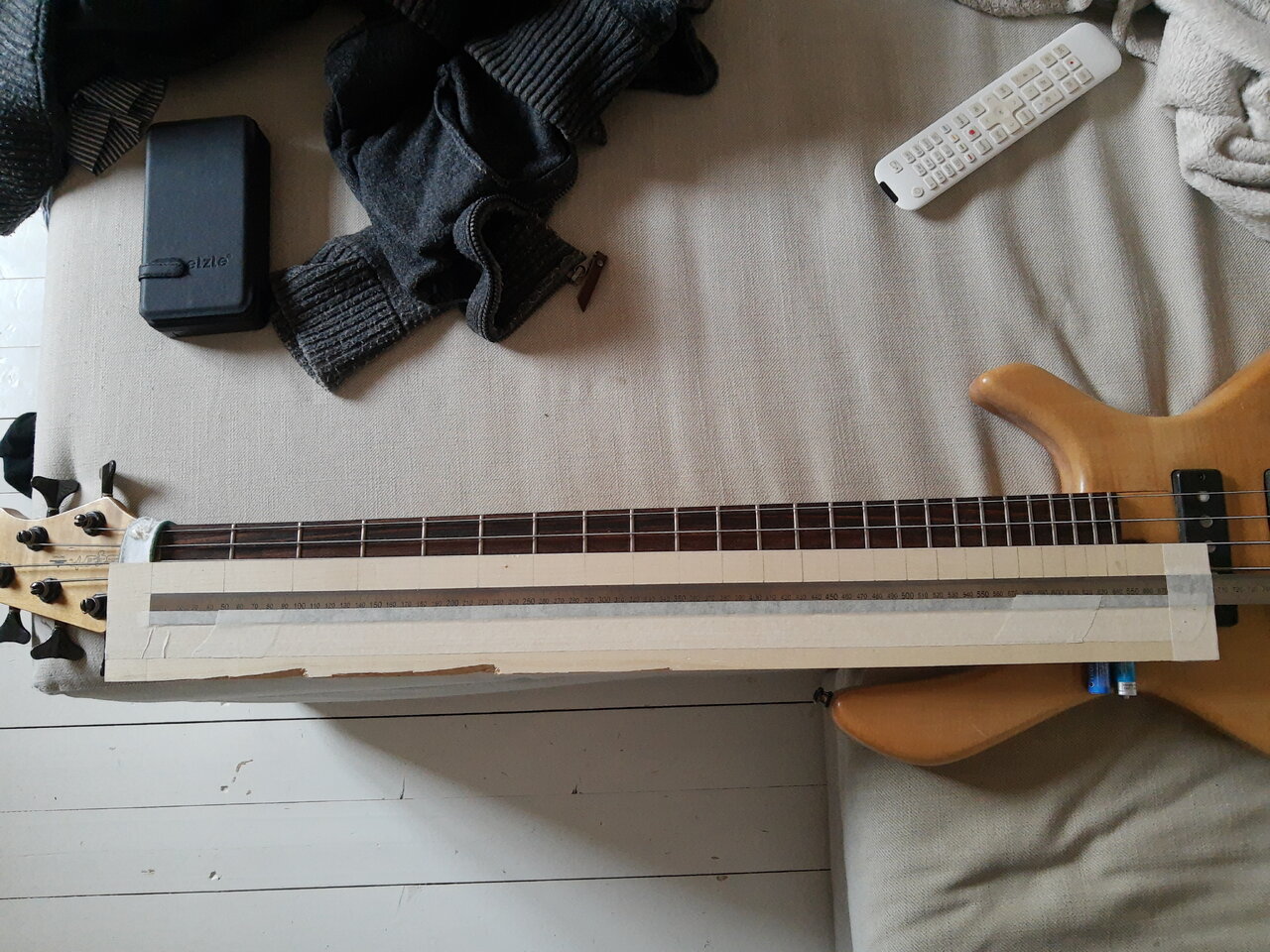 Es wäre wohl schwierig, auszuleimen und dann minimal neben der Leimfuge wieder zu sägen. Mal pragmatisch gesprochen: Mach mal weiter - wenn der Bass schlecht intoniert, kannst du dir die Arbeit immer noch machen. Außerdem könntest du beim Bünde Abrichten die Bundkrone etwas in die richtige Richtung versetzten.![]()