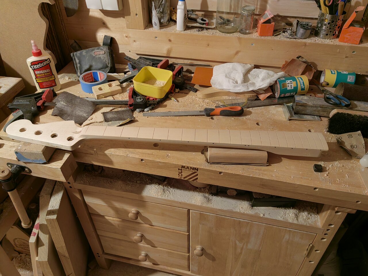 Wenn der Hals mal montiert ist und Saiten drauf, wirst Du noch 2 mm in der Stärke abschleifen wollen...