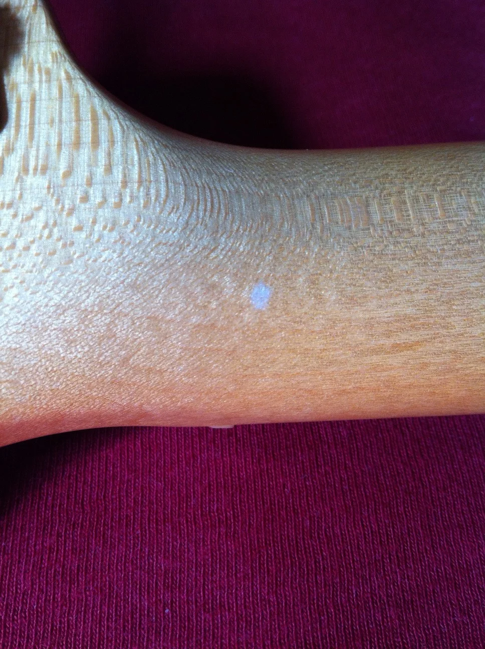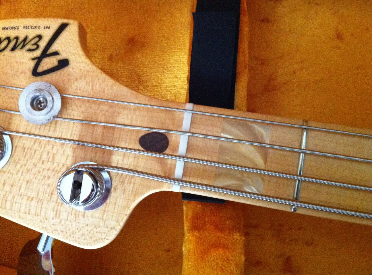 Da ist mir jetzt aufgefallen, dass ich an zwei Jazz-Bässen am Übergang zur Halsplatte so ganz kleinen Dellen hab. Hab die Bässe vor ca. 2-3 Jahren neu gekauft. Erst hatte ich meine Halterungen in Verdacht. Dann habe ich aber festgestellt, dass das wohl an der Auflage liegt, die sind zwar mit so weichem Stoff bespannt, aber darunter sind ziemlich harte Holzkanten.