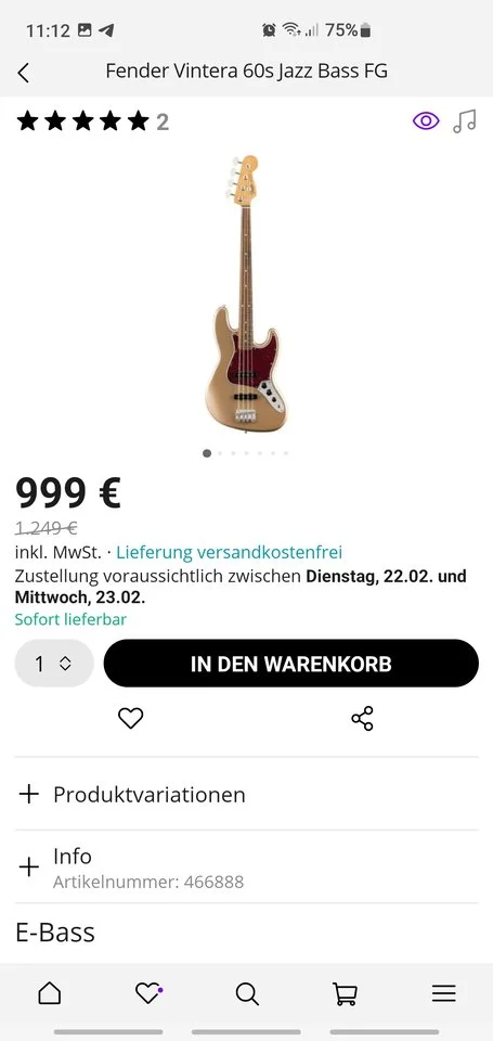 Hätte mal ne'Frage zum Vintera Bass.Der goldfarbige Fender Bass gefällt mir sehr,sowohl von der Farbe,als auch vom Klang.