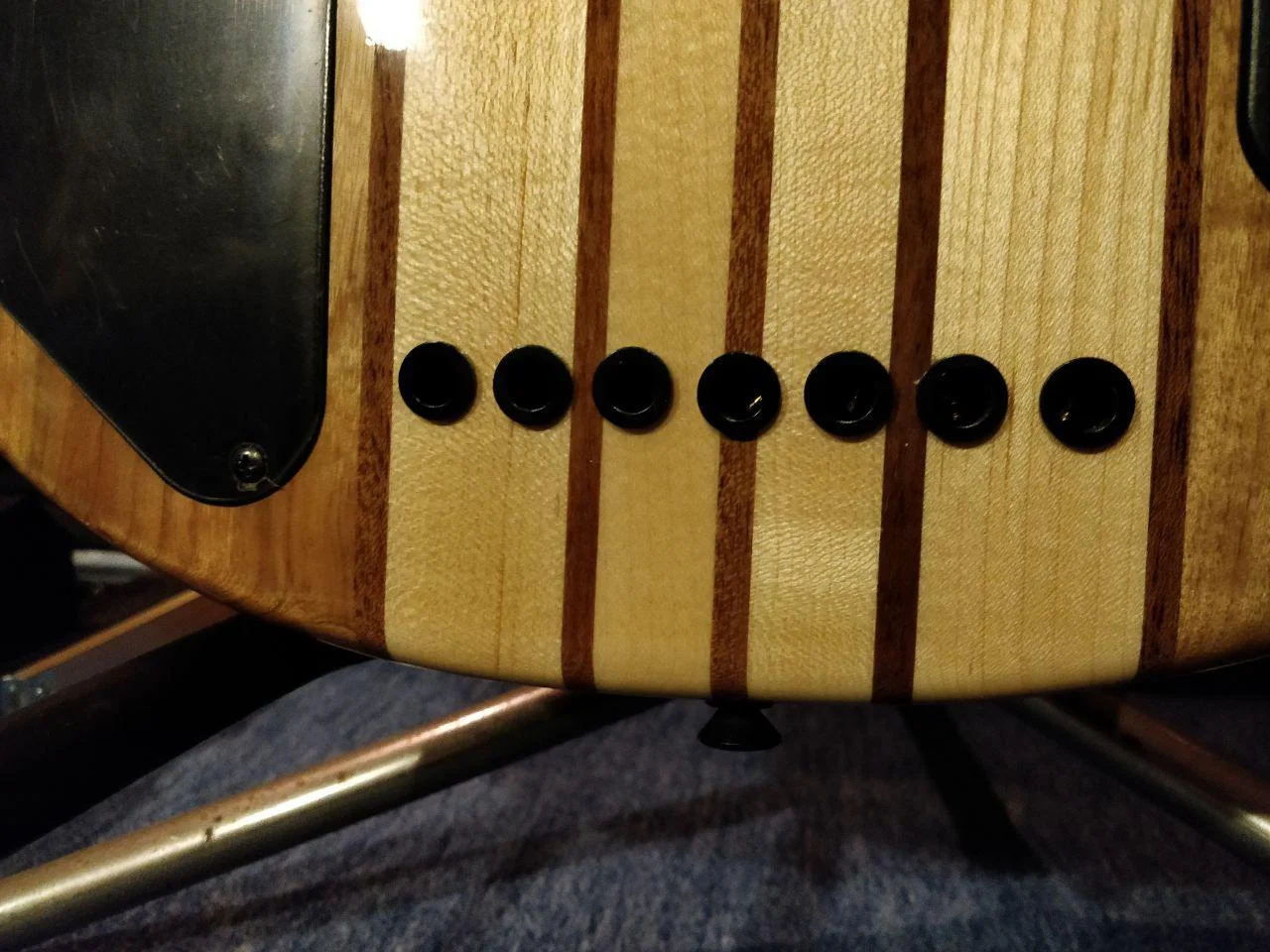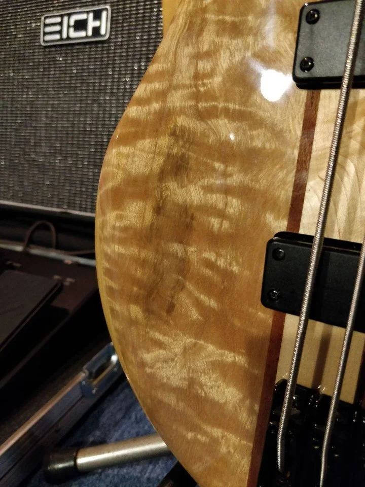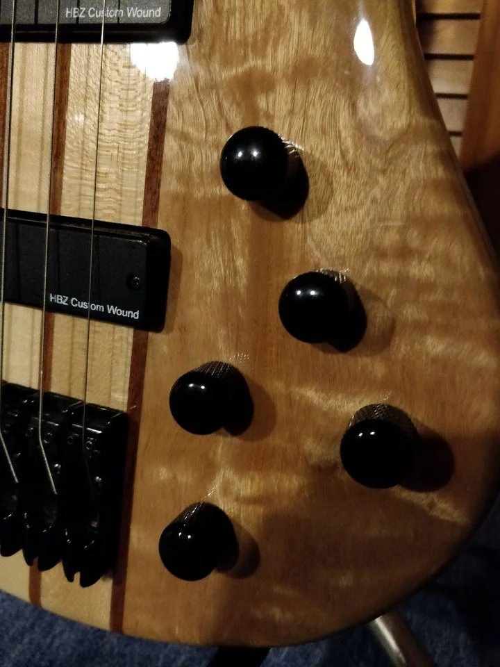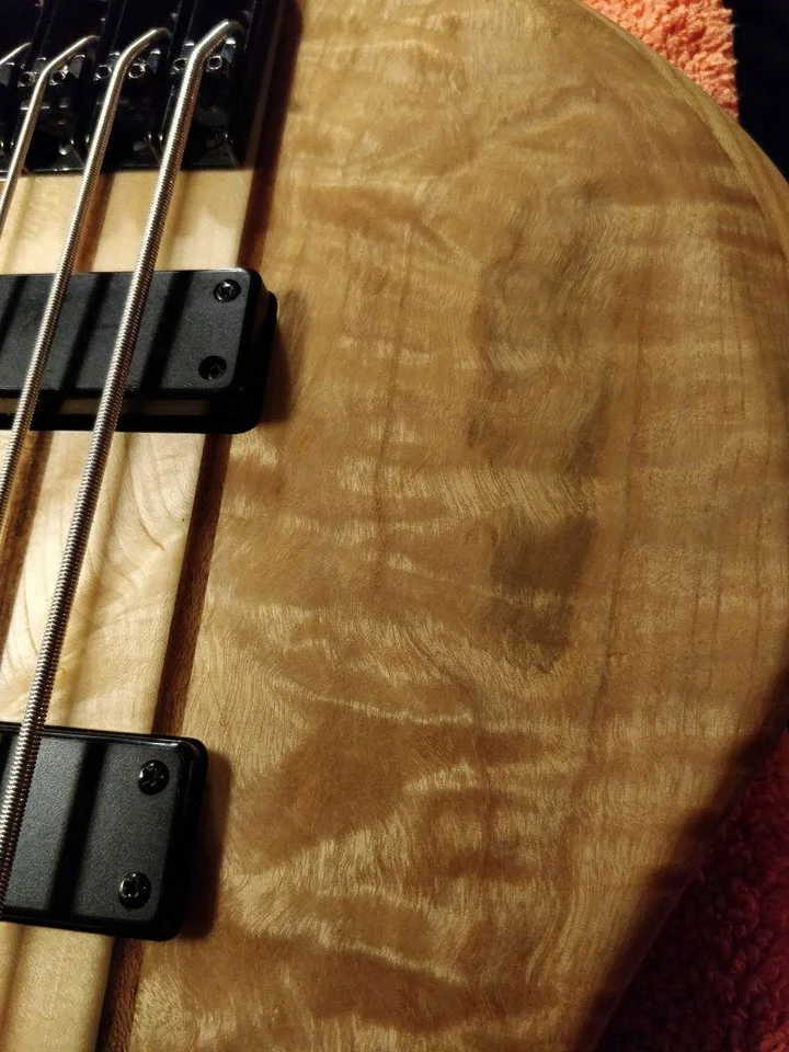 - durchgehender 5-streifiger Hals: Ahorn/Nato
