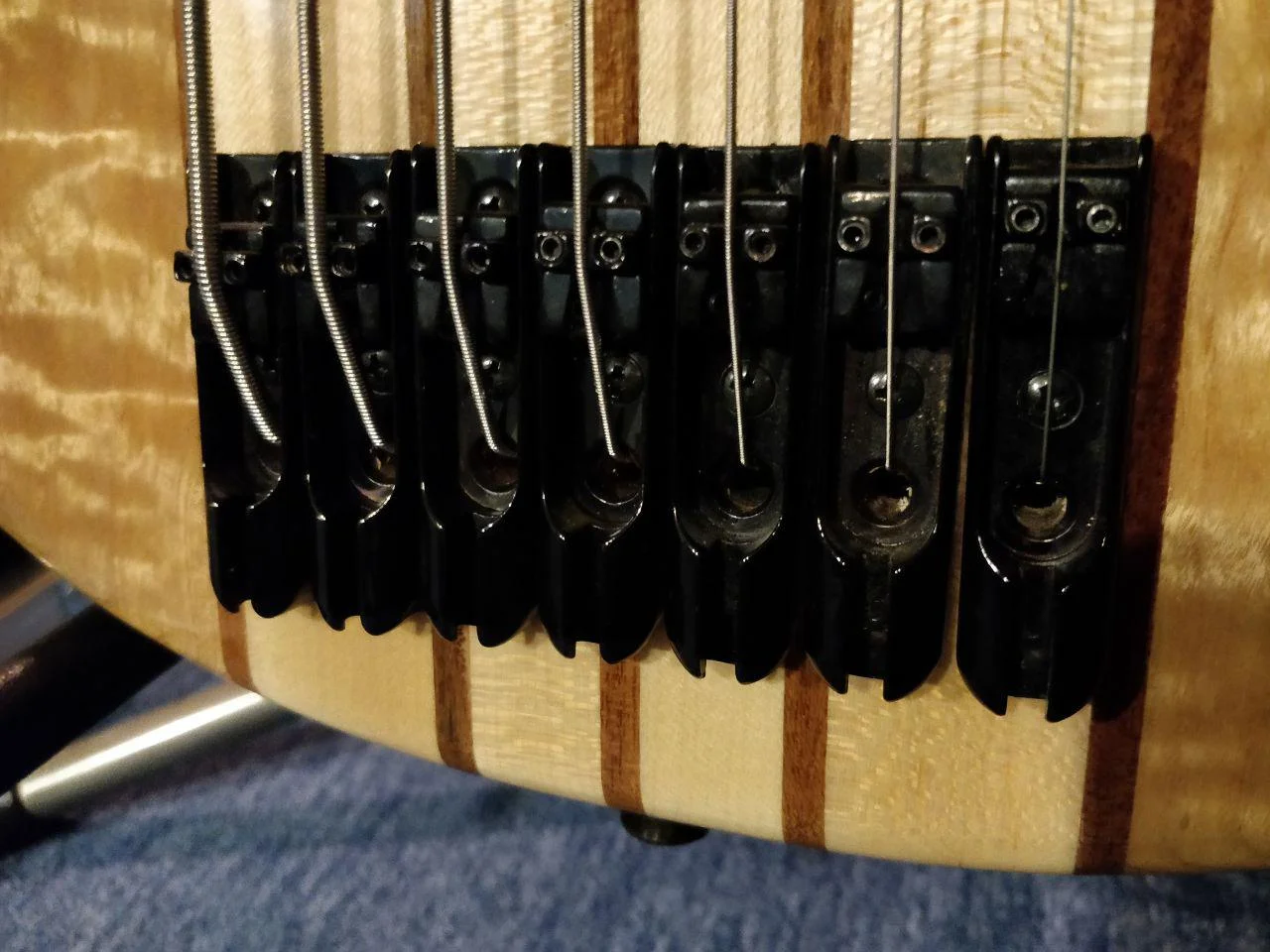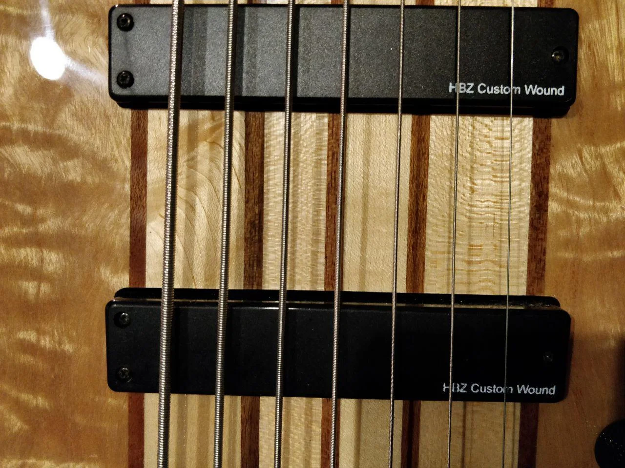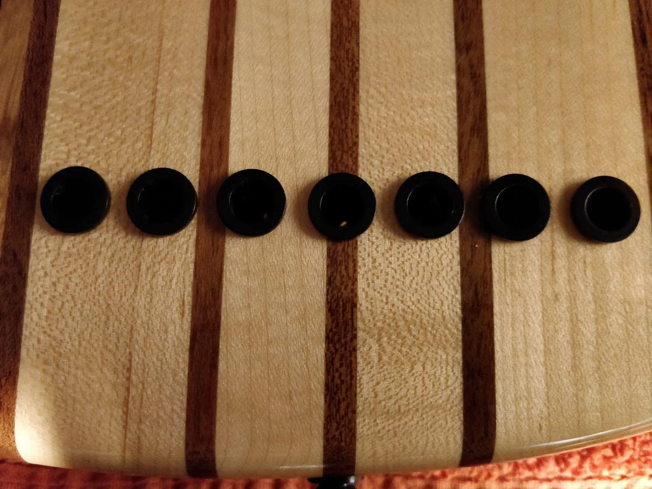 - durchgehender 5-streifiger Hals: Ahorn/Nato