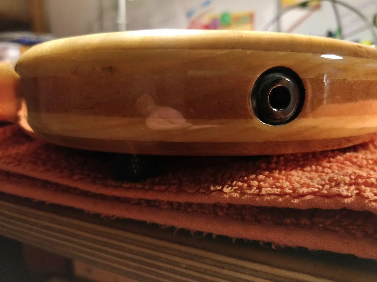 Bislang habe ich weder Optisch, mal abgesehen von einem etwas dunkleren Fleck, bedingt durch die durchschimmernde Holzmaserung auf der Vorderseite, noch technisch, irgendwelche gravierenden Makel oder Mängel entdecken können.