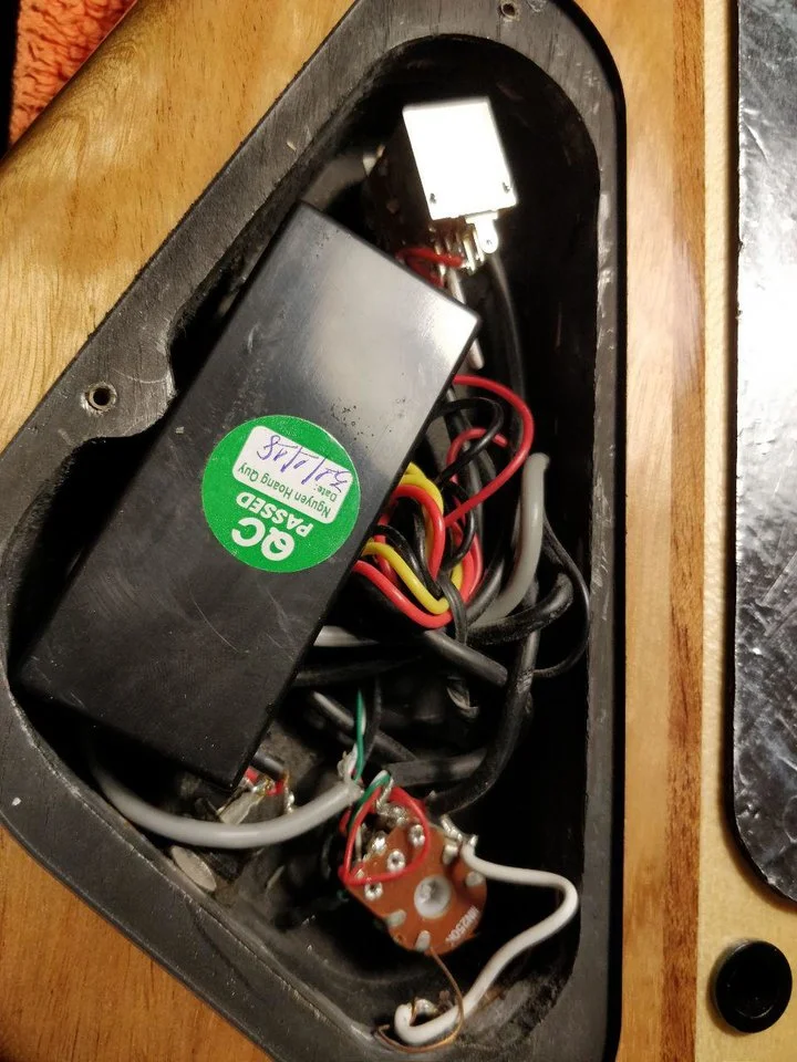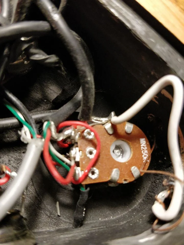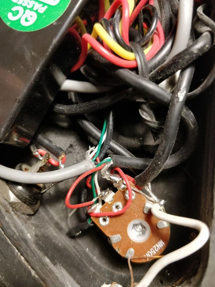 Einzelne Poties der Elektronik waren etwas fest aufgedrückt, mit der Konsequenz, dass diese auf dem Body auflagen und beim Drehen auf selbigem schabten.