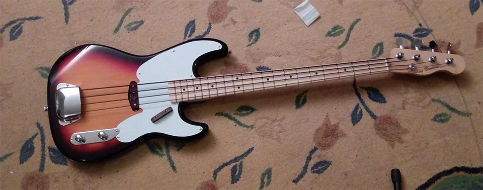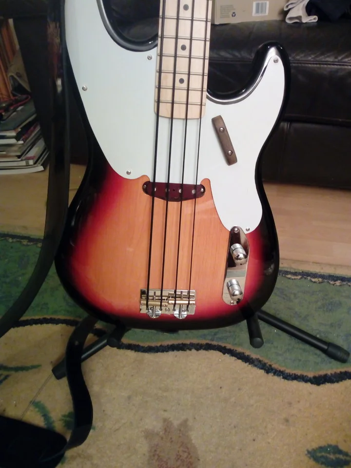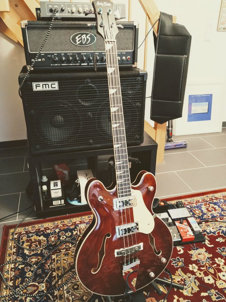 Das ist n echt cooler Semi-Hollow-Bass fürs Geld. Einzige Makel sind das absolute Billo-Schlagbrett, von dem ich gar nicht weiß, wieso es überhaupt noch dran ist, und das leider Gottes bemalte Griffbrett. Das hätte man schöner machen können. Die restliche Verarbeitung ist aber wirklich brauchbar, der Sound genau so wie man es von einem Hollowbody erwartet. Steg-PU und Tonblende am besten abklemmen, dann hat man einen wunderbar holzigen Ton. Werde demnächst mal noch n passendes Stück Schaumstoff vor den Steg packen, damit die ganze Geschichte dann auch schön gedämpft ist. Mal gucken wie das rüberkommt.