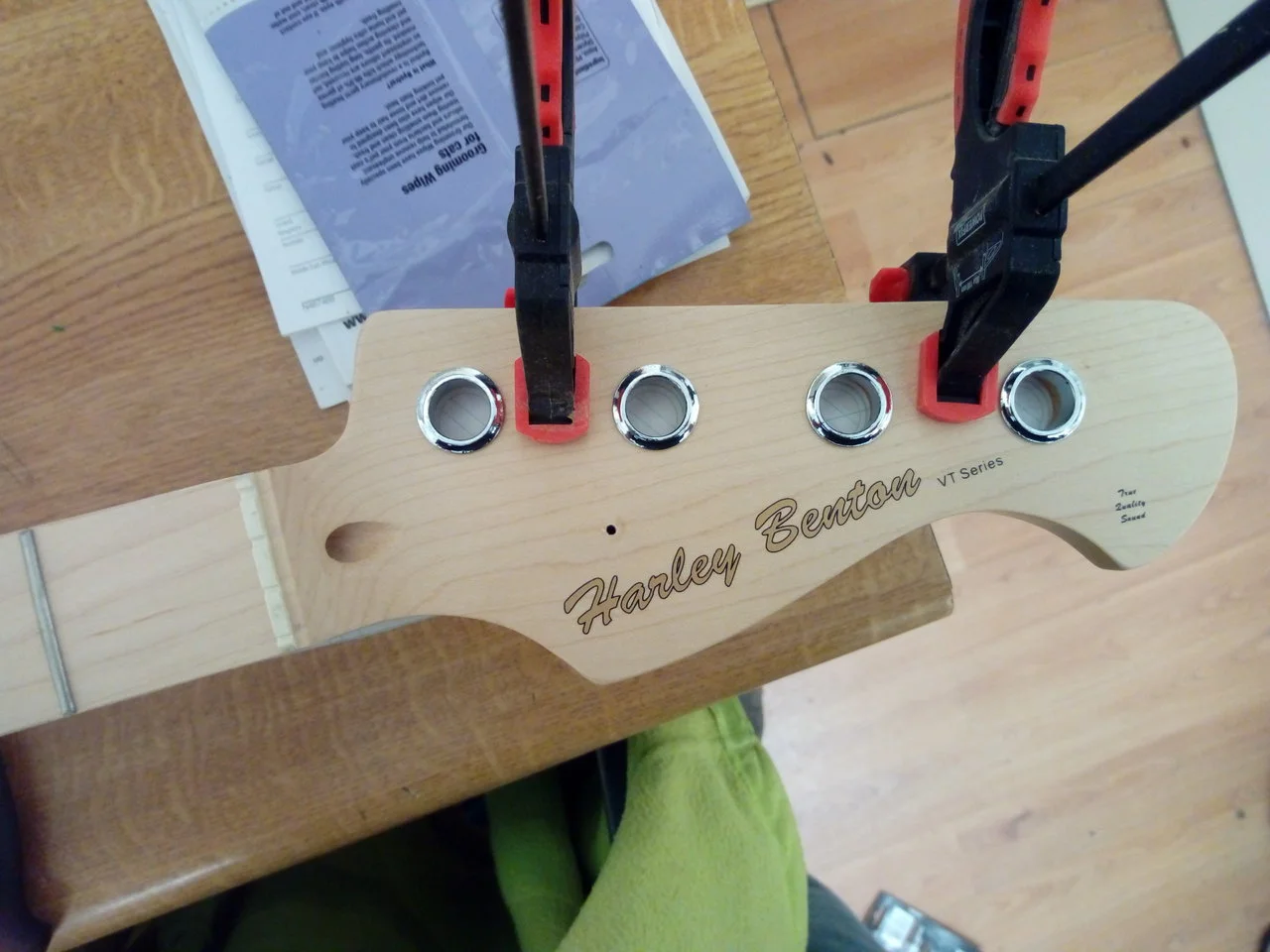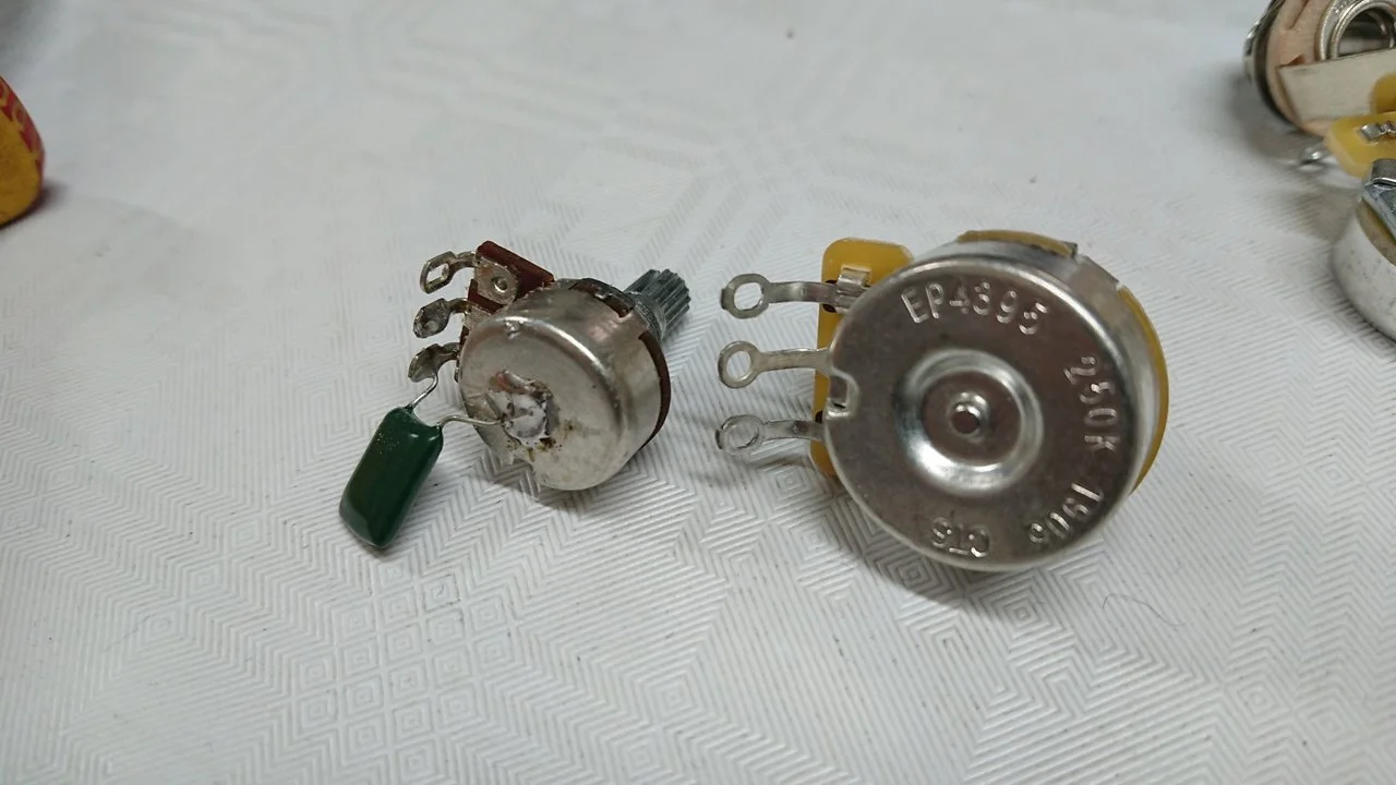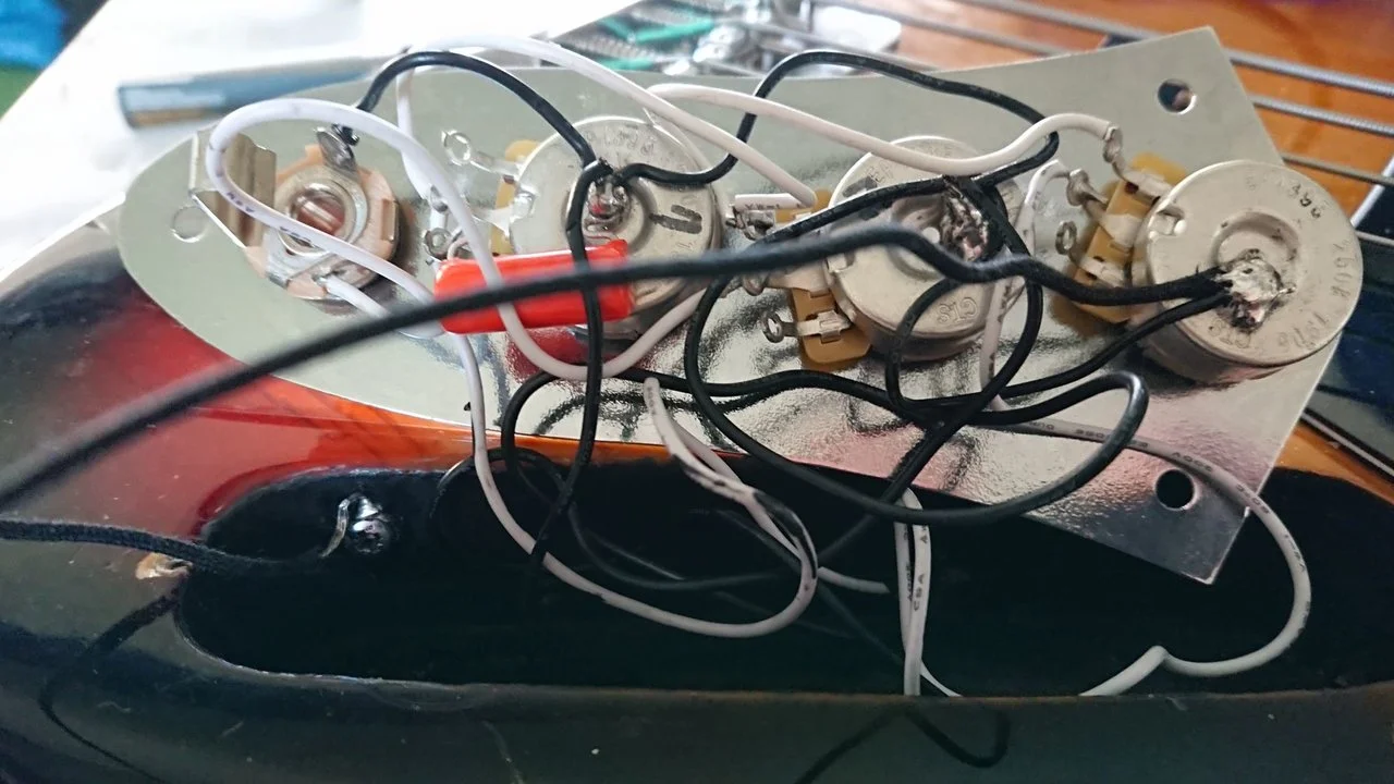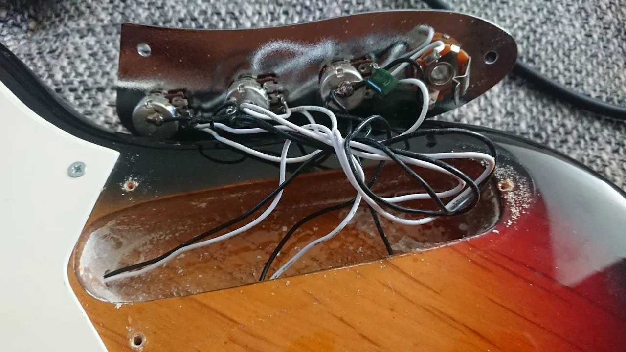 Result of 90 minutes work including bridge swap for 2 saddle and pickup swap for Martin Herrick hand wound single.