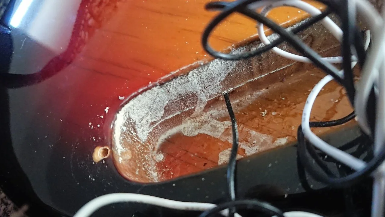 Removing the pickguard revealed completely new insights into the Harley Benton build quality at that time. I hope that has changed for the better in the meantime.
