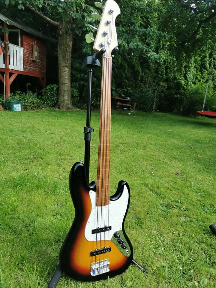 Bei Bässen wird die aktive Elektronik durch das Stecken des Kabels eingeschaltet. Der Minuspol der Batterie ist am Ringkontakt der Klinkenbuchse verlötet und somit ist der Stromkreis offen, wenn kein Kabel steckt und die Batterie verliert keinen Saft. Beim Einstöpseln eines Mono Klinkenkabels wird der Ringkontakt mit dem Schaft kurzgeschlossen und der Minuspol liegt auf Masse, wodurch ein Stromkreis zustande kommt und die Elektronik läuft.Kabel laß ich normalerweise drin, so wie bei meinen anderen Bässen (Peavey Grindbass, TRBX 504, 505, Ibanez). Einschalten beim Kabel reinstecken kenn ich sonst nur von Effekten, z.B. Boss Sy200. Aber so knapp vor Ende der Garantie... wollt ich den HB 5-Saiter nicht einschicken da Passiv-Fan. Ist vom Signal her laut genug daß man einen Preamp im Gerät nicht wirklich brauchtzwar nicht so in Aguilar Stärke aber mit dem Yamaha Tonabnehmer kann der konkurrieren. Der B550 ist ein wenig Tiefenlastig, aber an meinem Basspreamp regel ich das wieder raus