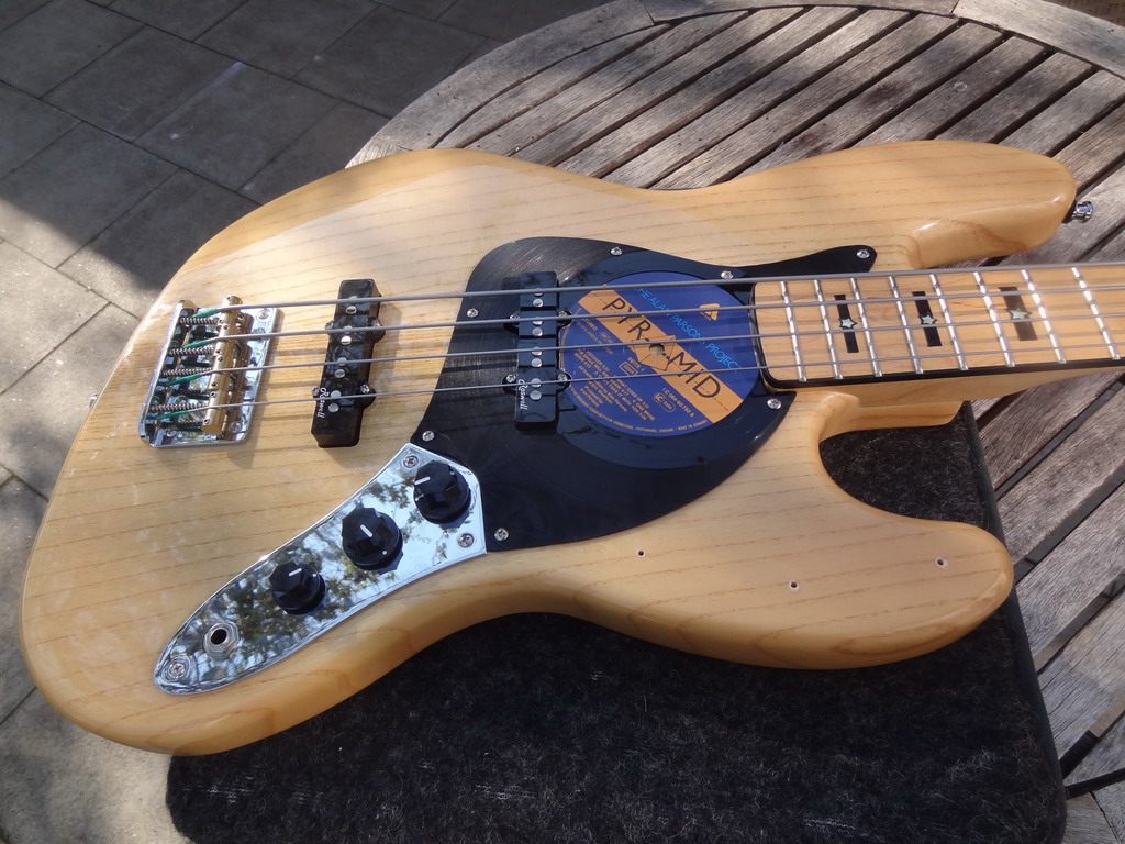 Ernie Ball 65-130, also HEAD. Setup, Test, WOW! Absolut authentischer JB-Sound, wertige Optik und Haptik. Eine perfekt eingebundene H-Saite und endlos Sustain zum Niederknien! Böse 5,5kg, die aber wie ein Anker ohne Kopflast am Gurt oder auf dem Schoß ruhen. Und das alles für 150,- plus 100,- für Hardware + ein paar Euro für Tru Oil, Waterslidefolie, Schleifmaterial usw. Und das sind Neupreise! Suchte man sich das Material günstig gebraucht, wäre das Projekt sogar für etwa die Hälfte realisierbar!