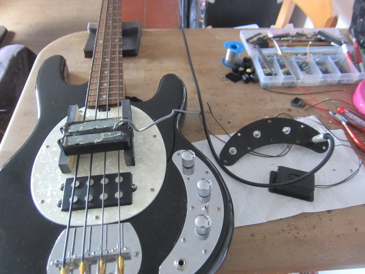 Ich habe einen Harley Benton MB-4 (die MusicMan Kopie) erstanden. Der Ursprungsplan war, ihn auf aktiv umzubauen, der PreAmp vom Musikding war aber zu groß...