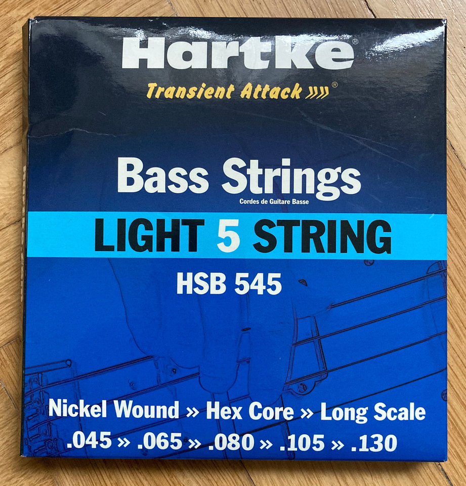 Habe beim Aufräumen diesen noch original eingeschweißten Satz Hartke HSB 545 Light 5 String (.045 .065 .080 .105 .130) gefunden.