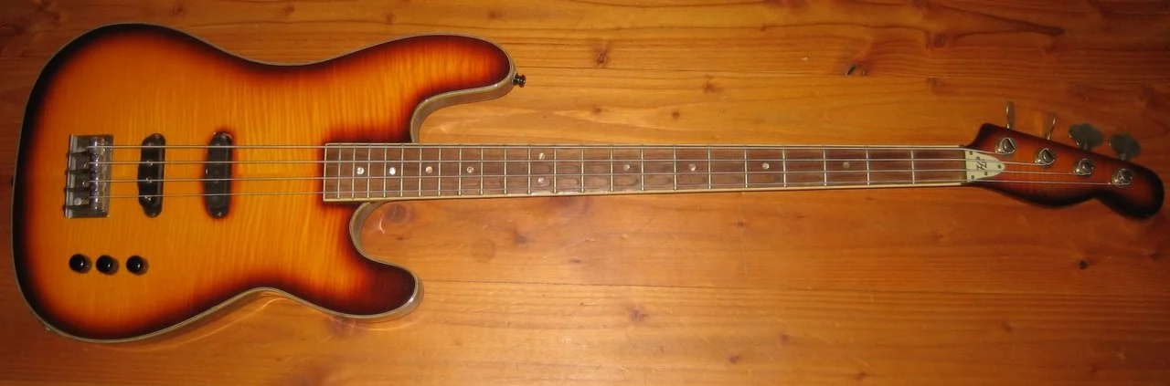 MeinSquire Squier JV JazzBass aus 1982, den ich der 90er für 350,-DM in einem SecondHand-Shop gekauft habe, war nie der Bass, den ich lange behalten wollte. Er bot sich aber als Bastelbass an und so bekam er sehr schnell einen SKC-JB-Carbonhals (der damals bei Clover rumlag), eine Schaller 3D-Brücke und aktive EMGs.