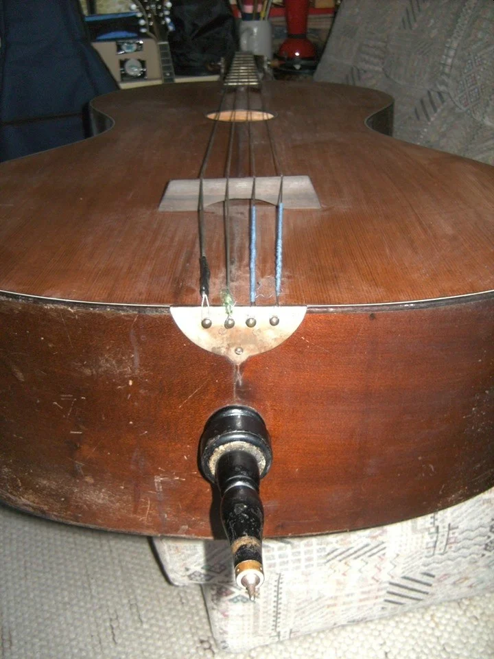 ein Bekannter hat schon länger einen "Zupfbass" im Bestand (siehe Bilder). Mir ist so ein Typ Bass noch nie begegnet, scheint aber eine Art kleiner aber voll bundierter Kontrabass ausschließlich zum Zupfen zu sein.