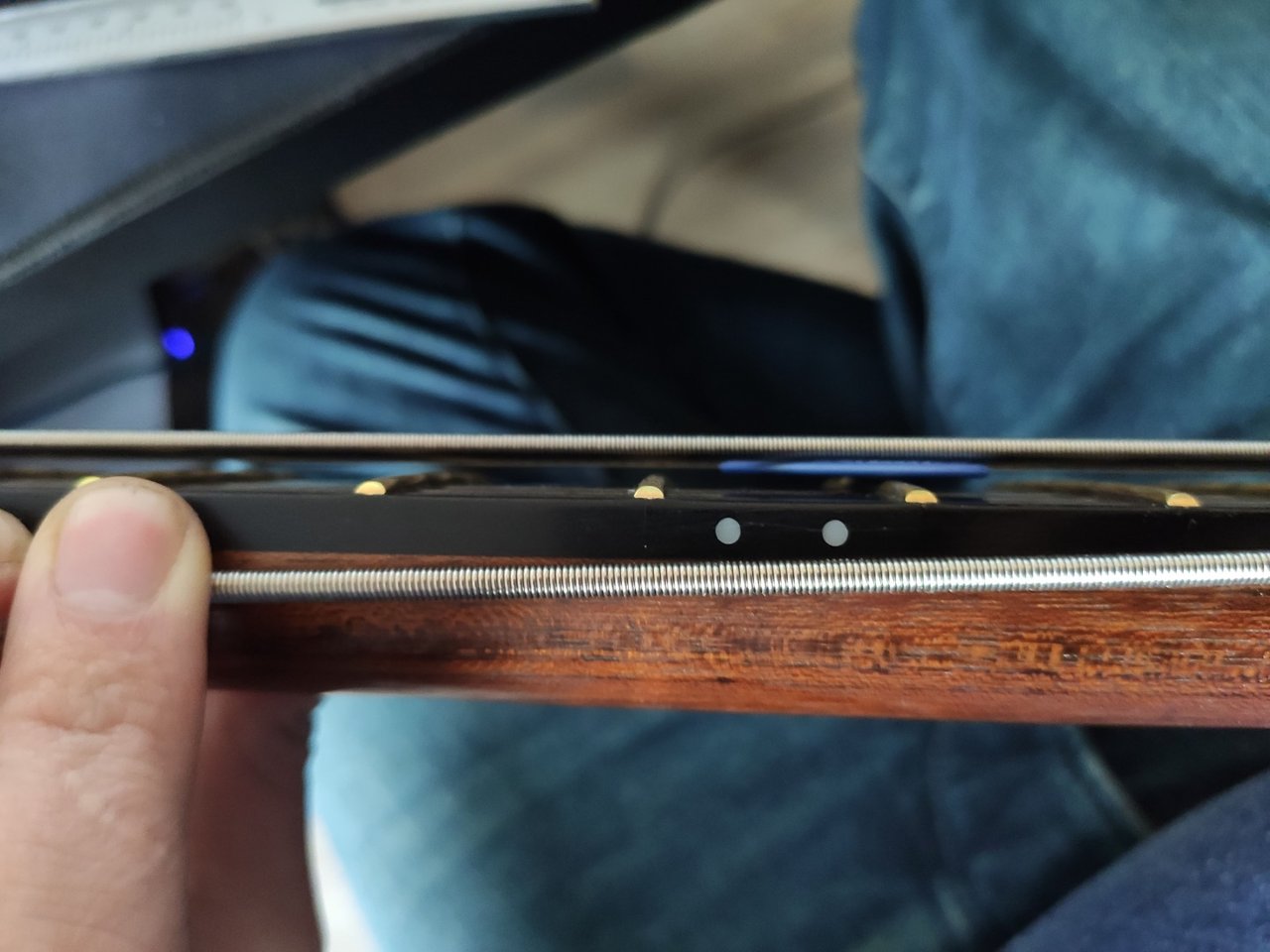 Genau diesen leichten unfrischen, wabbernden, dump´en plop, habe ich lange auch bei 110er Rotosounds (auf JazzBass) gehabt, die sehr viele Jahre mein Fav waren, was mich genervt hat, war der unterschied zu den oberen Saiten, die mehr obertöne hatten, weil strammer und nur Ton tiefer(CGCF). Für den Warwick mag das passen, aber bei nem JazzBass passt das nicht, vor allem nicht beim 4 Saiter.Hab ziemlich gut geschätzt, ein 1,5mm Pick klemmt sich direkt von alleine fest, die Seite ist ne 105er.