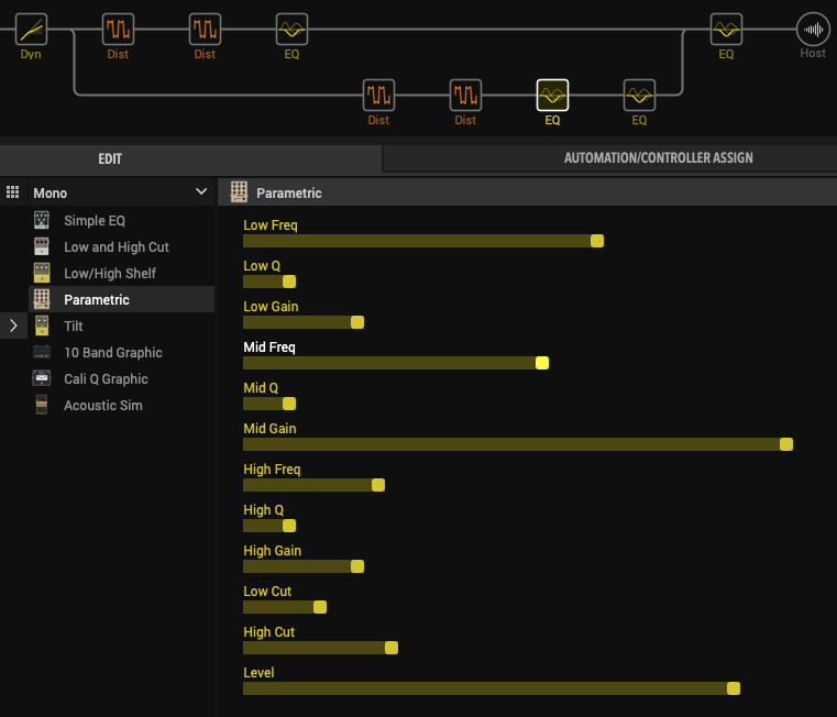 Guter Hinweis mit den Höhen: Den Patch habe ich für direkte Abhöre gebaut, in meine Fall Kopfhörer(Bayer DT880 Pro). Über eine Bassbox muss das natürlich gehörig justiert werden damit es tönt. Sind ja genug EQs in dem Preset drinNoise Gate ausgemacht und überall mehr Treble mit Tilt EQ und in den Drives. Aber ich glaube das ist auch mein Bass sound, andere Bässe bringen bestimmt deutlich mehr High End und brauchen diese Boosts nicht