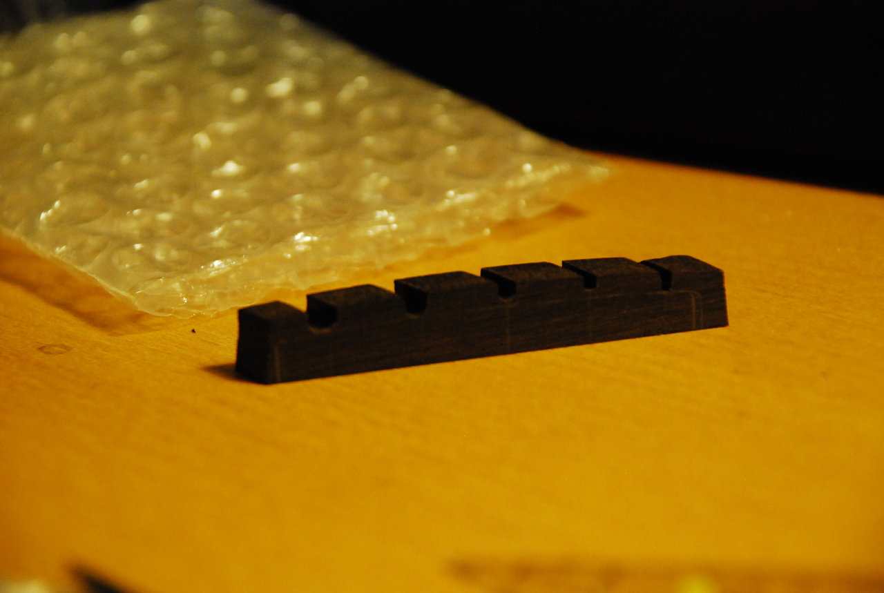 Beim Sattel bin ich auch gespannt! Der wird auf jeden Fall noch in der Höhe reduziert, also die Gesamthöhe und nicht die der Saiten, die sollte eigentlich passen. Erwähnt sei auch, dass ich einen Nullbund habe. Aber ich werde es dann sehen.