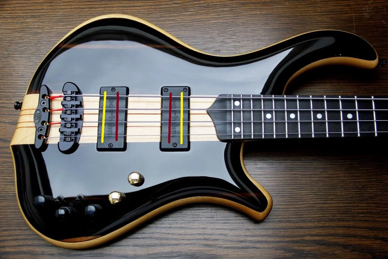 ich würde gerne die beiden Soapbar PUs (Bartolini M4) parallel in einem Bass so verlöten, dass jeweils nur eine Spule pro Pickup abgenommen wird. Zum Umschalten würde ich gerne ein Doppelpoti verwenden. Die Bartolinis haben insgesamt fünf Kabel: