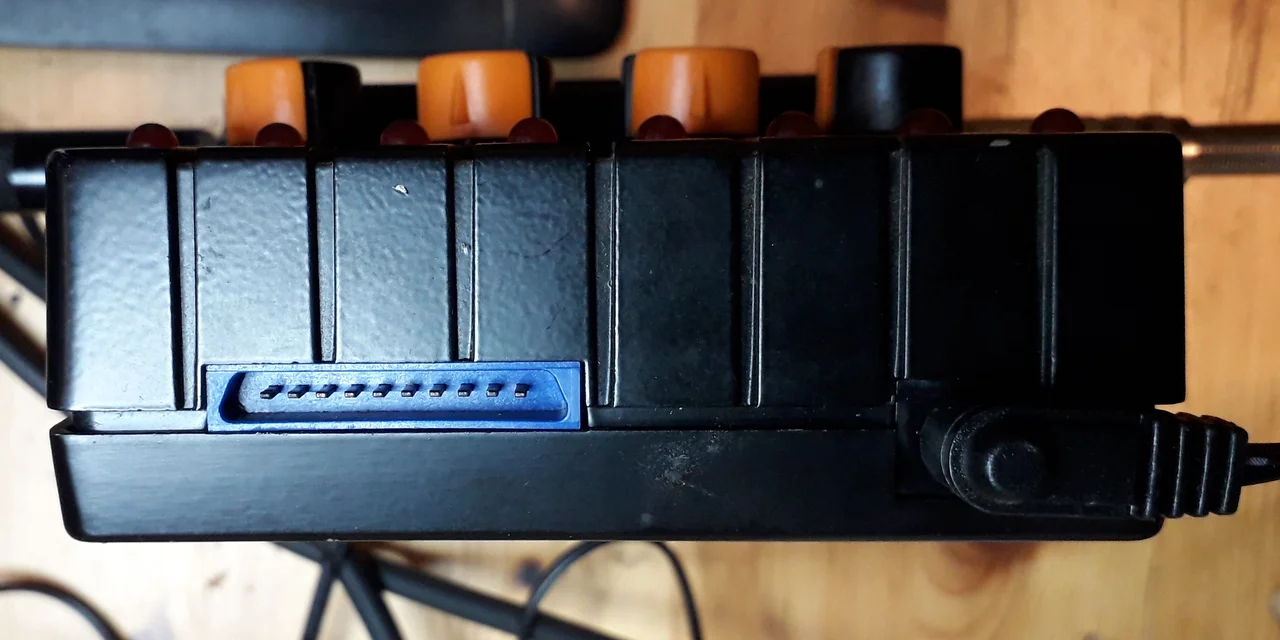 Neben dem Stromanschluß befindet sich ein 10 Pin Connector der auf dem digitalen Steuerboard montiert ist. Allerdings hab ich keine Idee hab, wofür der da ist. Die vier Drehregler sind in Wirklichkeit Encoder mit 12 Positionen, deren Settings dann von den drei IC (Volume (TC9170P), Tone (TC9156P) und Schaltmatrix (TC9162N)) umgesetzt werden.