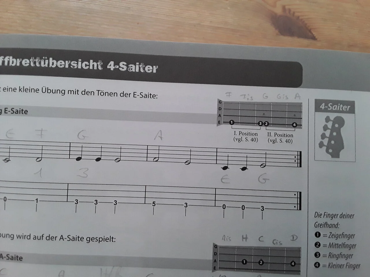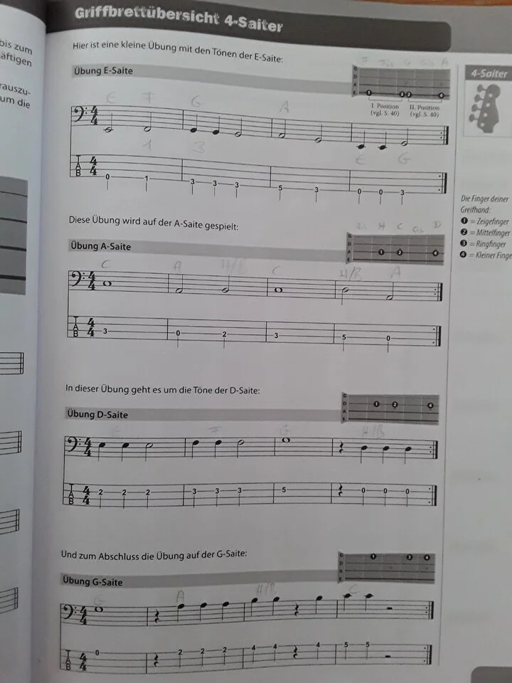 Darauf folgende Übungen haben dann auch immer eine I oder II dabei stehen, aber hier in den Beispielen verändert sich ja die Position vo den einzelnen Fingern. Ich weiss einfach nicht wohin mit welchem Finger...