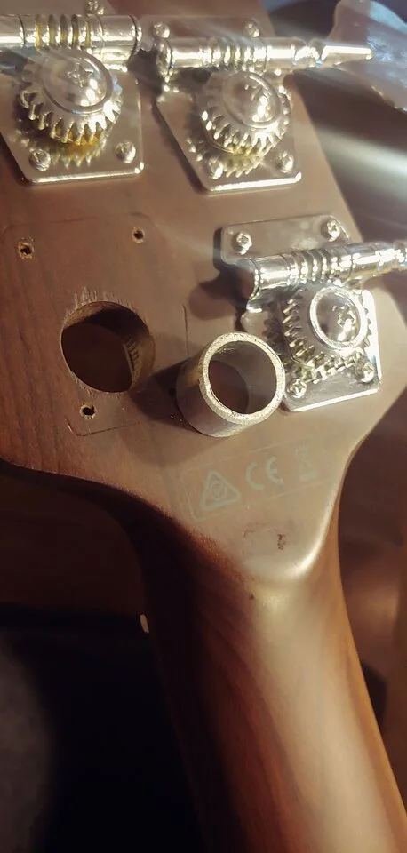 ich hatte eigentlich vor, einen BT1 D-Tuner von Hipshot an meinem TMB600 zu verbauen. Habe mir einen gekauft und dann blöderweise bemerkt, dass der Tuner rein von seinen Ausmaßen her (Grundplatte) zu groß ist, also mit dem anderen Tuner (2/2 Anordnung) kollidiert. So ein Mist