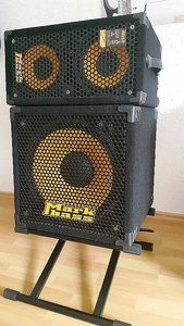 Nur 12kg für eine 2x10 ? Das ist ja mal eine Ansage. War mir gar nicht bewusst, dass Hans so leichte 210er baut. Seine leichteste 12er, die 112UL ist mit 11kg nur 1 kg leichter. Da 10er nicht so ganz mein Fall sind, habe ich die 112UL mit Hochtöner, also die 112H UL. Für Wohnzimmerkonzerte und auch kleinere Clubgigs reicht die auf jeden Fall. Ich habe zwar später noch einen kräftigeren Speaker nachgerüstet und daraus quasi eine 112H HP gemacht, aber das hatte andere Gründe.Ich habe aus Angst vor zu wenig Membranfläche bei nur einem Lautsprecher eine 210H UL im Slimgehäuse bei FMC in Auftrag gegeben. Der Eich T300 (oder 500 oder 900) passt vorne in meinen Gigbag, die Box kann ein- oder zweihändig getragen und als Sitzgelegenheit bei wenig Platz verwendet werden. Laut Website 12kg und deutlich günstiger als zwei einzelne Boxen. 300W 4 Ohm, um die Leistung des T300 ganz auszunutzen.