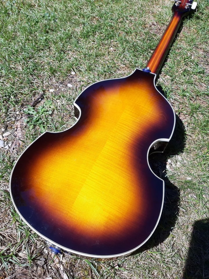 Zum Verkauf steht ein optisch und technisch einwandfreier Beatle-Bass aus der HCT-Contemporary-Serie von Höfner - also qualitativ besser als die billigen Ignition-Modelle und mit einem Sustainblock im Inneren des Korpus, womit der Grundcharakter des Instruments erhalten bleibt, aber auch modernere, tief herunterreichende Sounds möglich sind ...